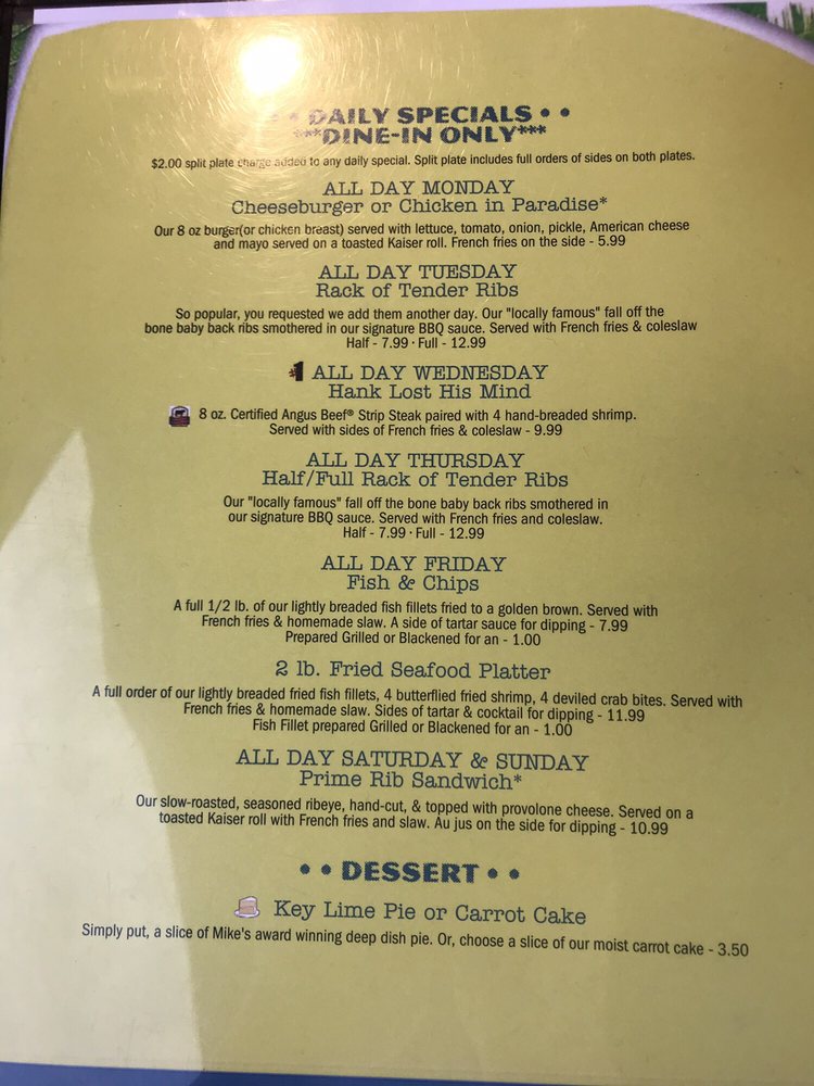 / lb. of our freshly breaded fish fillets, deep fried to a crispy golden brown. Served with tartar sauce and a side of coleslaw.