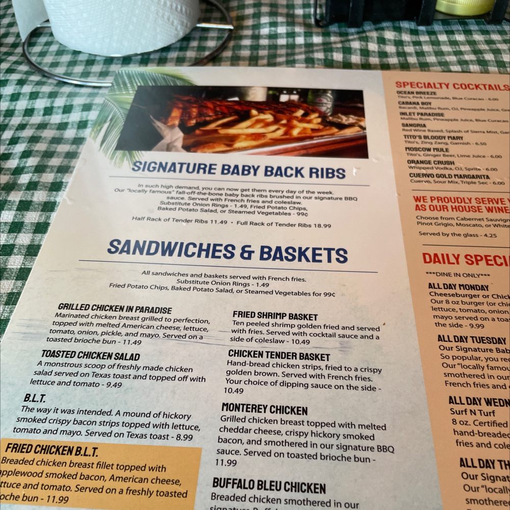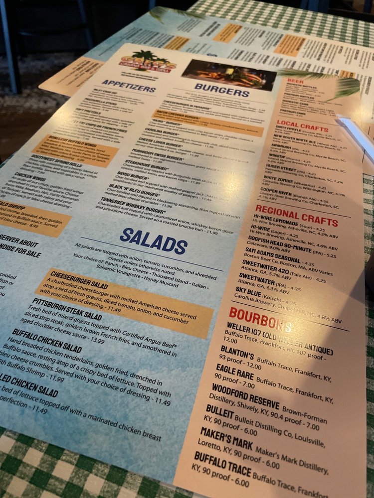 Greg's Cabana Bar & Grill is a cozy American bar located in Murrells Inlet, SC. Known for its delicious ribs, burgers, and buffalo chicken salad, this spot has impressed customers like Allison, Jason, Suzanne, Randy, and Ronald with its flavorful dishes and excellent service. The menu boasts many vegetarian options and offers a variety of amenities such as free Wi-Fi, outdoor seating, and a full bar. With a casual, divey atmosphere and options for catering and takeout, Greg's Cabana Bar & Grill is a great choice for lunch, dinner, or group gatherings. Whether you're craving mouth-watering ribs or juicy burgers, this spot is sure to satisfy your taste buds and leave you coming back for more.